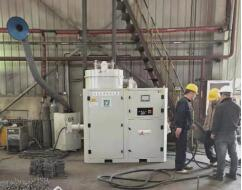 氣流受迫向上運動,經(jīng)過主過濾器。主過濾器具有一定的阻燃性,防止設(shè)備內(nèi)燃。凈化后的空氣可以循環(huán)回車間。主過濾器達到一定飽和值后,通過脈沖反吹系統(tǒng),將吸附于主過濾器表面的細小顆粒吹打掉落至底部集塵盒內(nèi)。